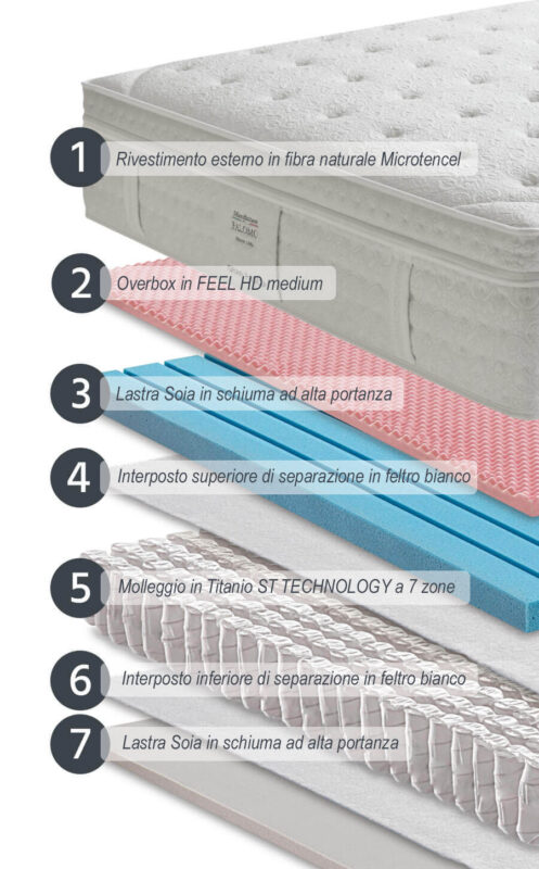 - Molleggio 7 zone in Titanio ST Technology.