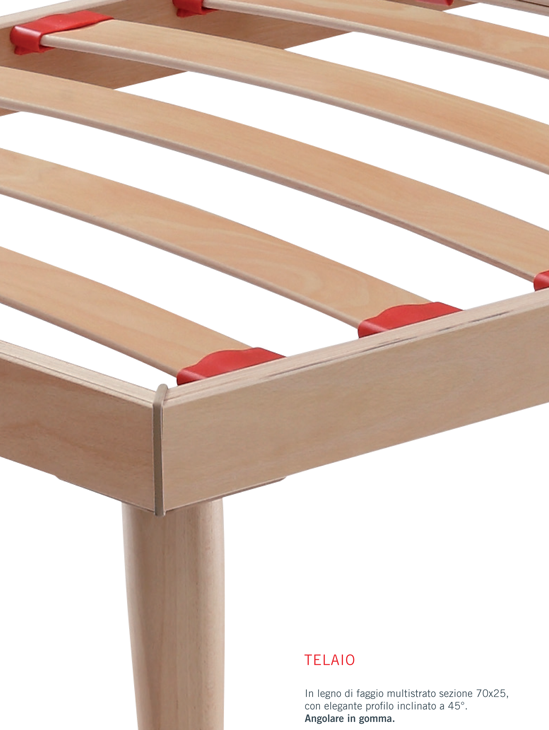 - Telaio robusto in legno multistrato di faggio con sezione da 70×25 mm.